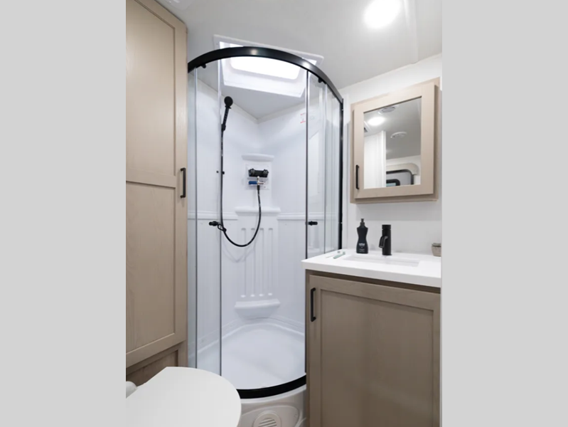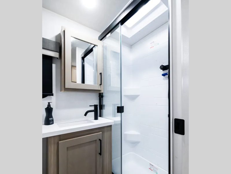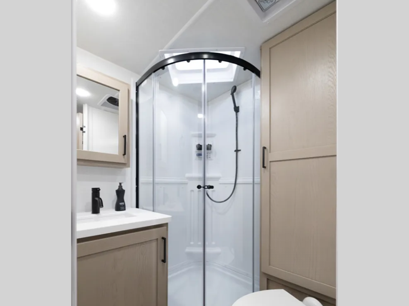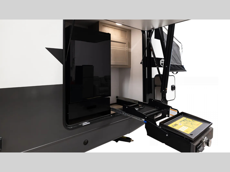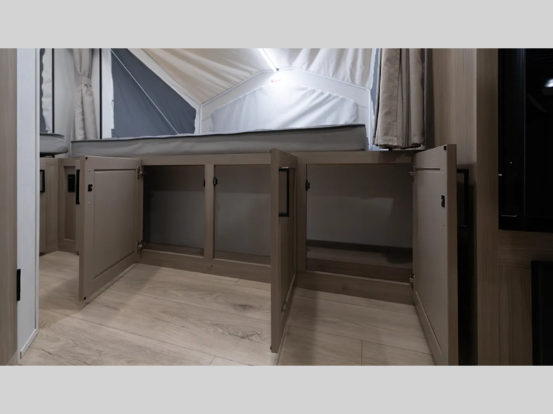 The six-sided aluminum framed construction and composite structural exterior walls are what make these expandables durable, and the easy reach lockable latch system makes set-up a breeze. Towing is made hassle-free thanks to the Dexter sprung axles and nitrogen-filled tires, plus there is a power tongue jack for added convenience. Head inside to roller shades, hidden hinge cabinet doors, residential look kitchen countertops and more comforts!