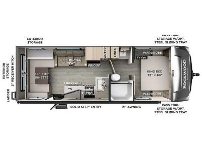 Each Rockwood Ultra Lite travel trailer by Forest River includes superior construction with a high gloss fiberglass cap, aluminum cage construction, and a power awning with LED lighting for a cozy and functional outdoor space. The torsion axle, power tongue jack will make towing smooth and hassle-free, along with the nitrogen filled, Goodyear Endurance tires and the tire pressure monitor system. Interior comforts include kitchen sink with high rise faucet, hidden hinge cabinet doors, and roller shades to name a few. Choose a Rockwood Ultra Lite travel trailer today!