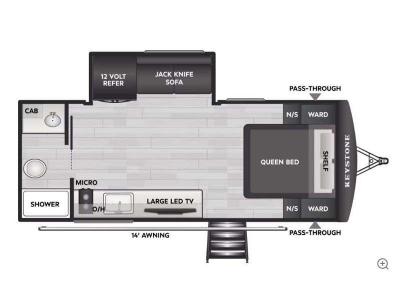 Sleeps 3 Slides 1 Length 22 ft 4 in Ext Height 10 ft 9 in Interior Color Cedar Frost Hitch Weight 485 lbs Dry Weight 4095 lbs Cargo Capacity 2405 lbs Fresh Water Capacity 45 gals Grey Water Capacity 34 gals Black Water Capacity 34 gals Furnace BTU 30000 btu Available Beds Queen Refrigerator Type Large Double Door 12V Refrigerator Size 8 cu ft Cooktop Burners 2 Number of Awnings 1 LP Tank Capacity 20 lbs Water Heater Type Girard Tankless AC BTU 13500 btu Awning Info 14' Axle Count 2 Number of LP Tanks 2 Shower Type Standard Similar Travel Trailer Floorplans