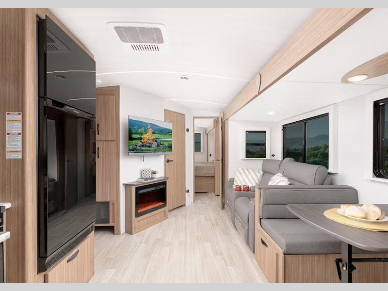 Sleeps 3 Slides 2 Length 31 ft 6 in Ext Height 11 ft 3 in Interior Color Cedar Frost Hitch Weight 895 lbs Dry Weight 7540 lbs Cargo Capacity 1960 lbs Fresh Water Capacity 54 gals Grey Water Capacity 76 gals Black Water Capacity 38 gals Tire Size ST225/75R15E Furnace BTU 30000 btu Available Beds King Refrigerator Type 12V Refrigerator Size 10 cu ft Cooktop Burners 3 Number of Awnings 1 LP Tank Capacity 20 lbs Water Heater Type Girard Tankless AC BTU 13500 btu Axle Count 2 Number of LP Tanks 2 Shower Type Standard Electrical Service 50 amp Similar Floorplans