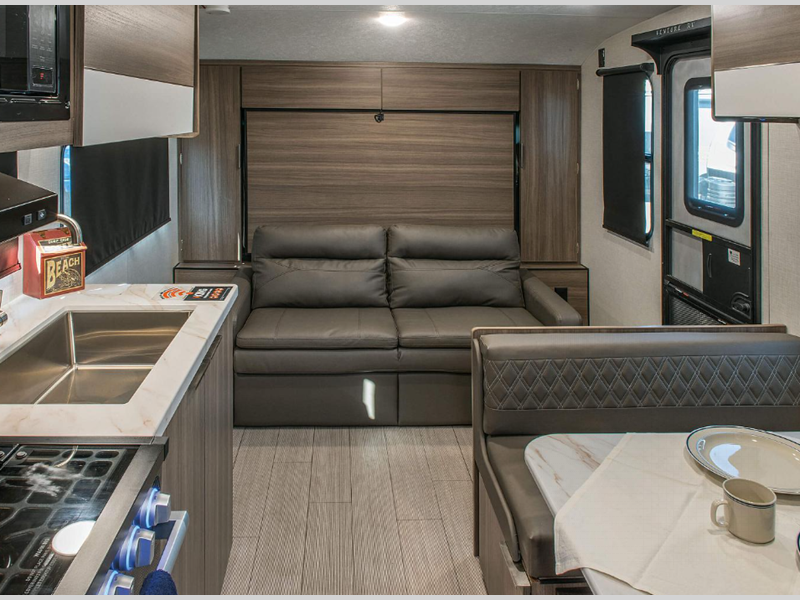 Venture RV Sonic travel trailer SN231VRL highlights: 64" Jiffy Sofa Booth ... more about Sonic SN231VRL